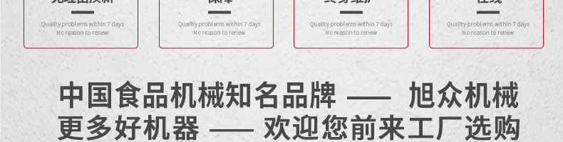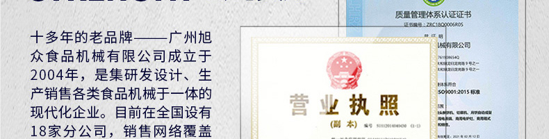 廣州旭眾食品機械有限公司是一家集科研開發(fā),生產(chǎn)設(shè)計,營銷服務(wù)為一體的現(xiàn)代化生產(chǎn)企業(yè)。現(xiàn)代化生產(chǎn)車間,精湛制造技術(shù),所產(chǎn)機械歷經(jīng)市場重重考驗,不斷贏得海內(nèi)外客戶的贊譽。
