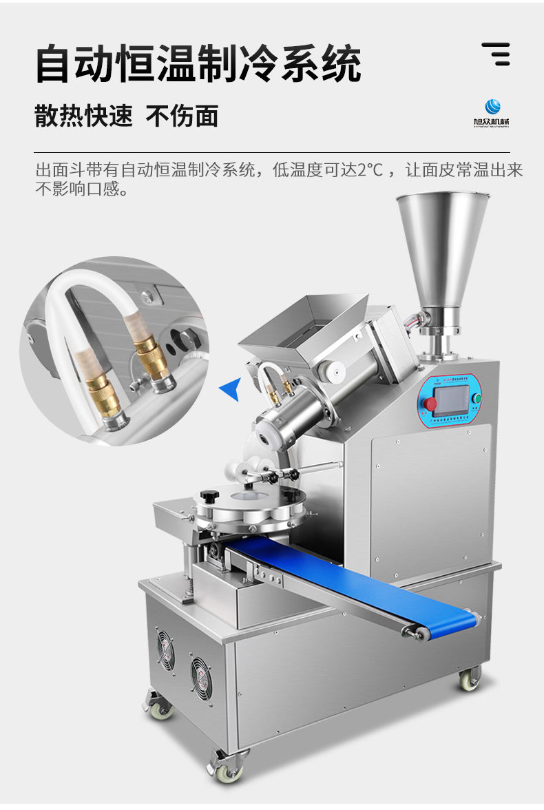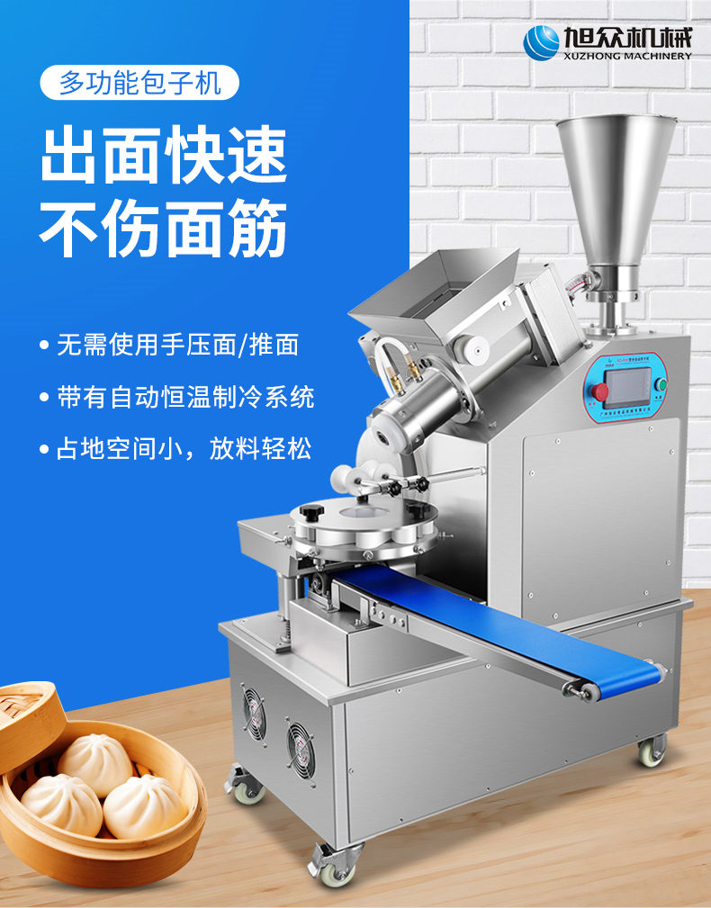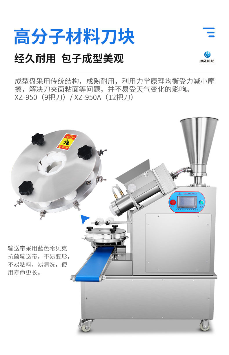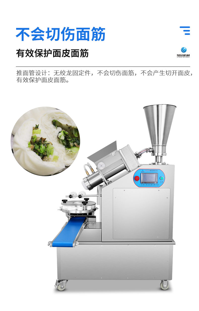 XZ-950型多功能包子機(jī),多功能包子機(jī),出面快速、不傷面筋。無(wú)需使用手壓面/推面,帶有自動(dòng)恒溫制冷系統(tǒng),占地空間小,放料輕松。