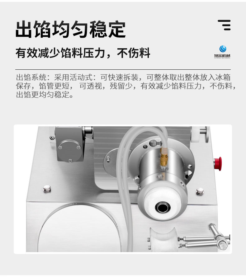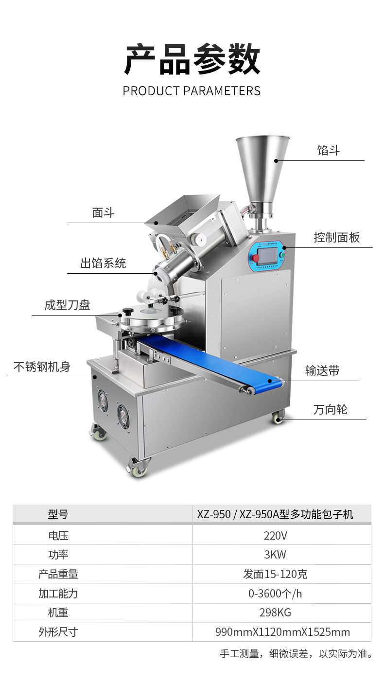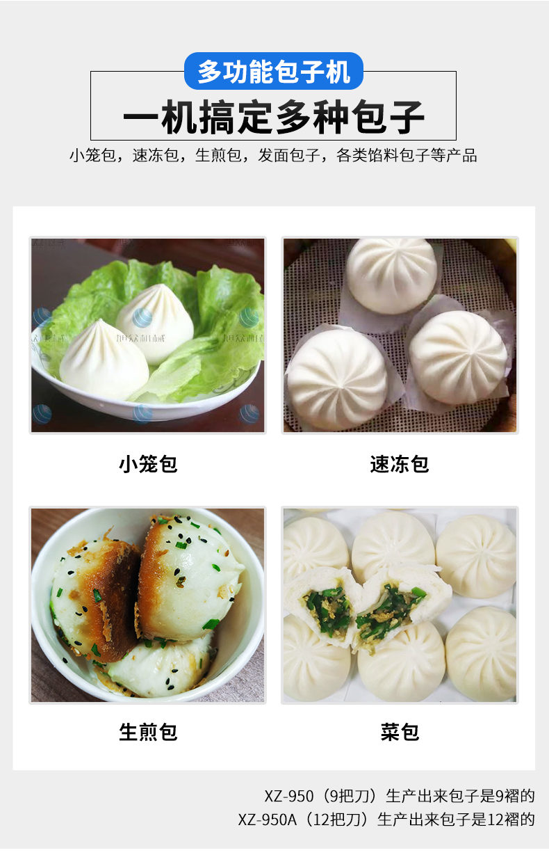 XZ-950型多功能包子機(jī),多功能包子機(jī),出面快速、不傷面筋。無(wú)需使用手壓面/推面,帶有自動(dòng)恒溫制冷系統(tǒng),占地空間小,放料輕松。