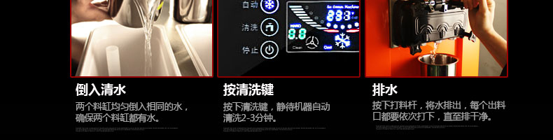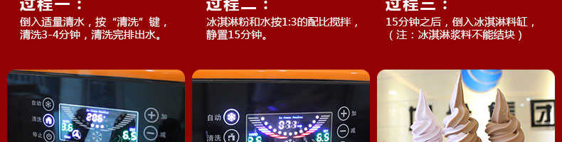 BQL-828立式冰淇淋機,1.選用國際牌壓縮機,輔以旭眾精湛工藝,大大縮短冰淇淋成型時間,高效節(jié)能;2.全新液晶智能觸控面板,簡單明了,多功能易操作;3.全新升級專業(yè)膨化泵,膨化率高,產(chǎn)量增加30%;4.一鍵清洗功能,省時方便;5.主要部件采用不銹鋼材質(zhì),時尚美觀,持久耐用;6.先進的機械攪拌系統(tǒng),機器運行穩(wěn)定可靠,低噪音,產(chǎn)品口感爽滑細嫩。