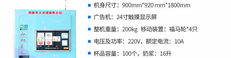 無人售貨冰淇淋機(jī), 人工成本越來越高,無人店、無人售賣機(jī)必將是一個趨勢。簡單而又重復(fù)的勞動(售賣)必將被智能無人替代。無人售貨自助冰淇淋機(jī)支持多種支付方式,支持遠(yuǎn)程監(jiān)管功能,支持預(yù)冷保鮮,支持多種口味混合,自動清洗少料報警。無需人工、場地?zé)o限制。