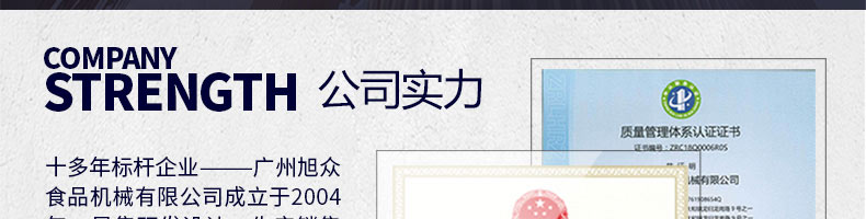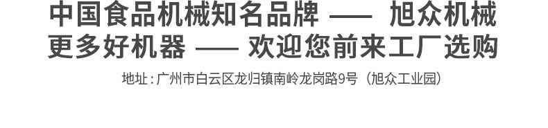 廣州旭眾食品機(jī)械有限公司是一家集科研開(kāi)發(fā),生產(chǎn)設(shè)計(jì),營(yíng)銷(xiāo)服務(wù)為一體的現(xiàn)代化生產(chǎn)企業(yè)?,F(xiàn)代化生產(chǎn)車(chē)間,精湛制造技術(shù),所產(chǎn)機(jī)械歷經(jīng)市場(chǎng)重重考驗(yàn),不斷贏得海內(nèi)外客戶(hù)的贊譽(yù)。