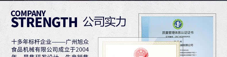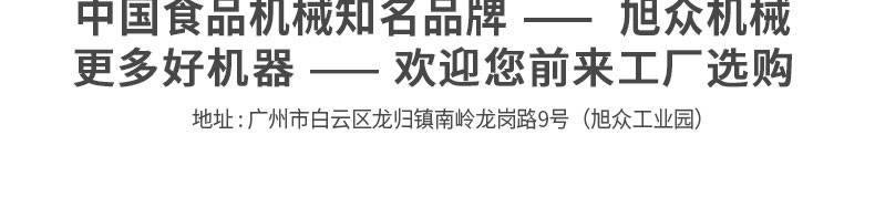 廣州旭眾食品機械有限公司是一家集科研開發(fā),生產(chǎn)設(shè)計,營銷服務(wù)為一體的現(xiàn)代化生產(chǎn)企業(yè)。現(xiàn)代化生產(chǎn)車間,精湛制造技術(shù),所產(chǎn)機械歷經(jīng)市場重重考驗,不斷贏得海內(nèi)外客戶的贊譽。