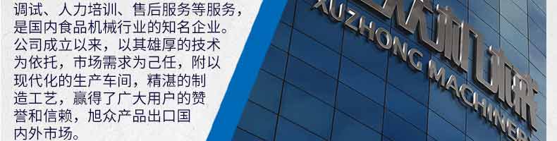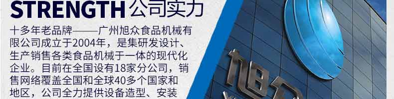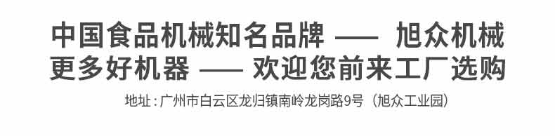 廣州旭眾食品機械有限公司是一家集科研開發(fā),生產設計,營銷服務為一體的現(xiàn)代化生產企業(yè)?,F(xiàn)代化生產車間,精湛制造技術,所產機械歷經市場重重考驗,不斷贏得海內外客戶的贊譽。