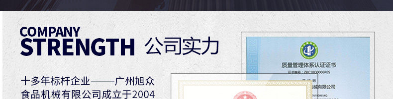 廣州旭眾食品機(jī)械有限公司是一家集科研開發(fā),生產(chǎn)設(shè)計,營銷服務(wù)為一體的現(xiàn)代化生產(chǎn)企業(yè)?,F(xiàn)代化生產(chǎn)車間,精湛制造技術(shù),所產(chǎn)機(jī)械歷經(jīng)市場重重考驗,不斷贏得海內(nèi)外客戶的贊譽(yù)。