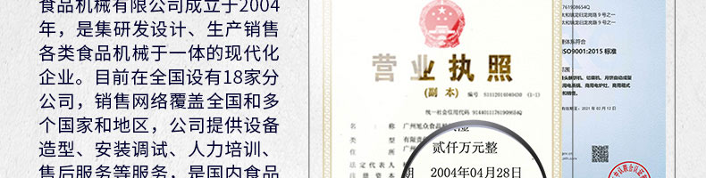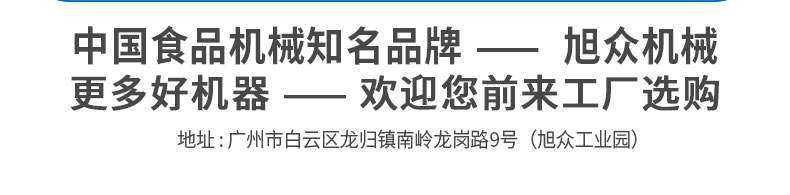 廣州旭眾食品機(jī)械有限公司是一家集科研開(kāi)發(fā),生產(chǎn)設(shè)計(jì),營(yíng)銷服務(wù)為一體的現(xiàn)代化生產(chǎn)企業(yè)?,F(xiàn)代化生產(chǎn)車間,精湛制造技術(shù),所產(chǎn)機(jī)械歷經(jīng)市場(chǎng)重重考驗(yàn),不斷贏得海內(nèi)外客戶的贊譽(yù)。