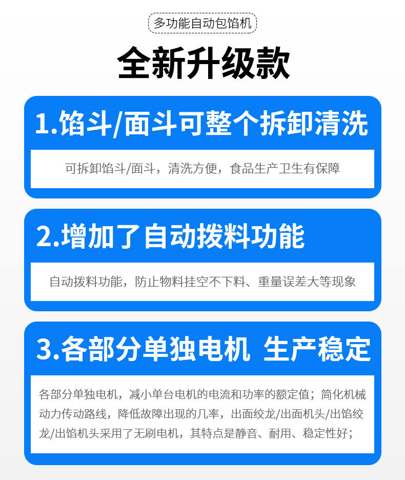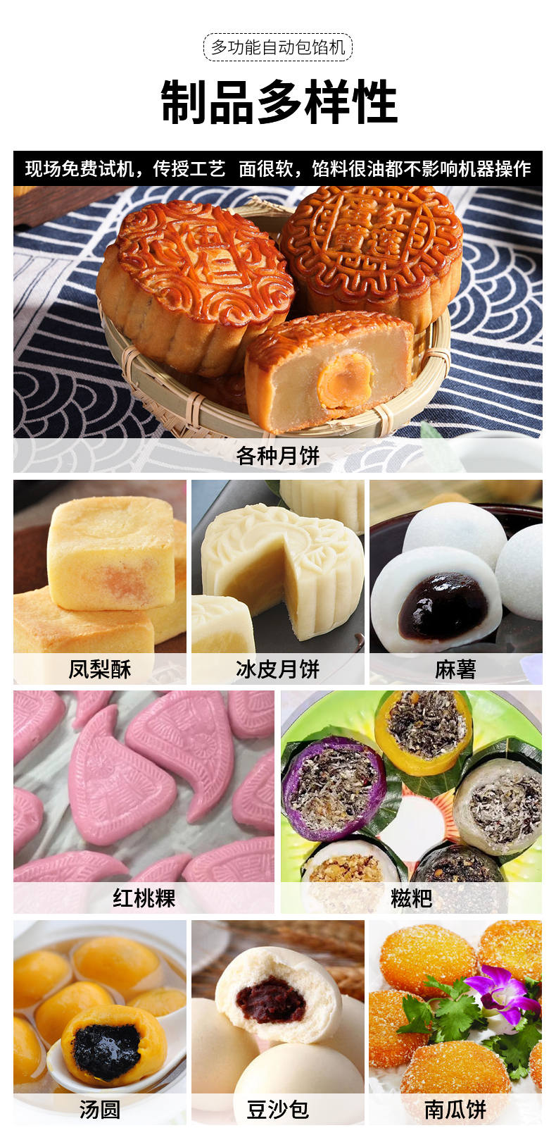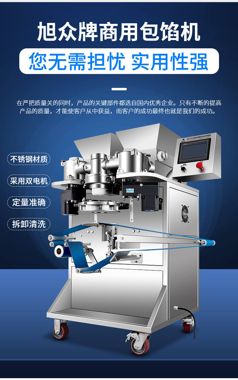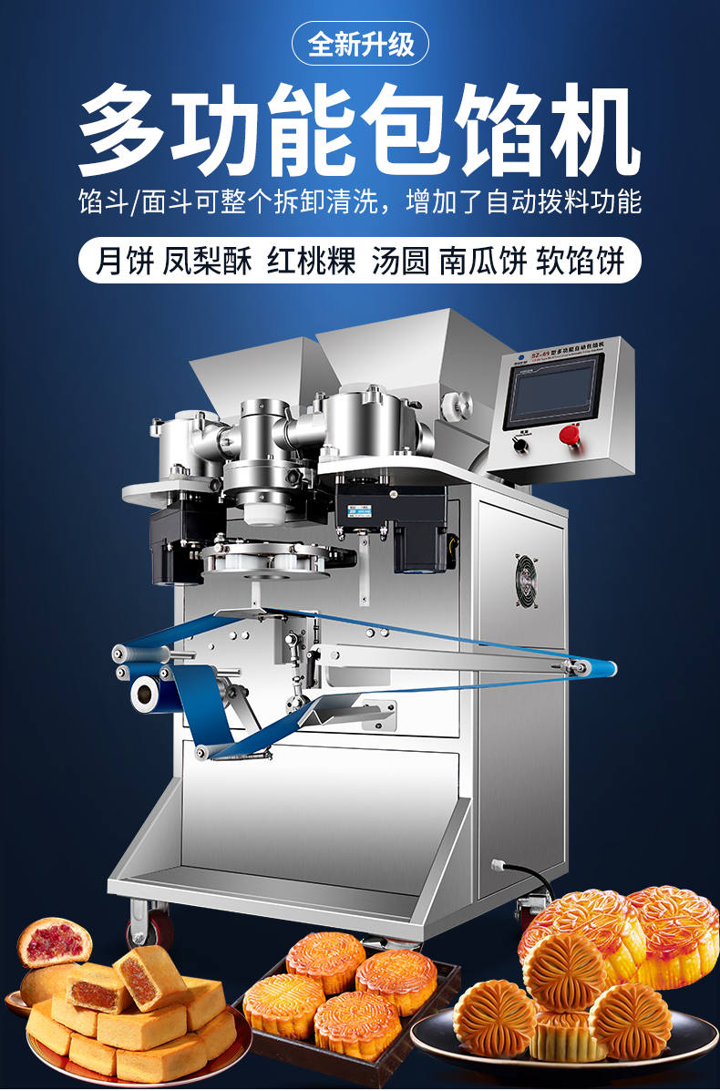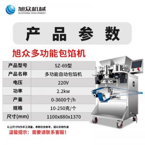 SZ-69型多功能自動(dòng)包餡機(jī),餡斗/面斗,可整個(gè)拆卸清洗,增加了自動(dòng)拔料功能。月餅鳳梨酥紅桃裸湯圓南瓜餅軟餡餅。在嚴(yán)把質(zhì)量關(guān)的同時(shí),產(chǎn)品的關(guān)鍵部件都選自國(guó)內(nèi)優(yōu)秀企業(yè)。只有不斷的提高產(chǎn)品的質(zhì)量,才能使客戶從中獲益,而客戶的成功最終也就是我們的成功。