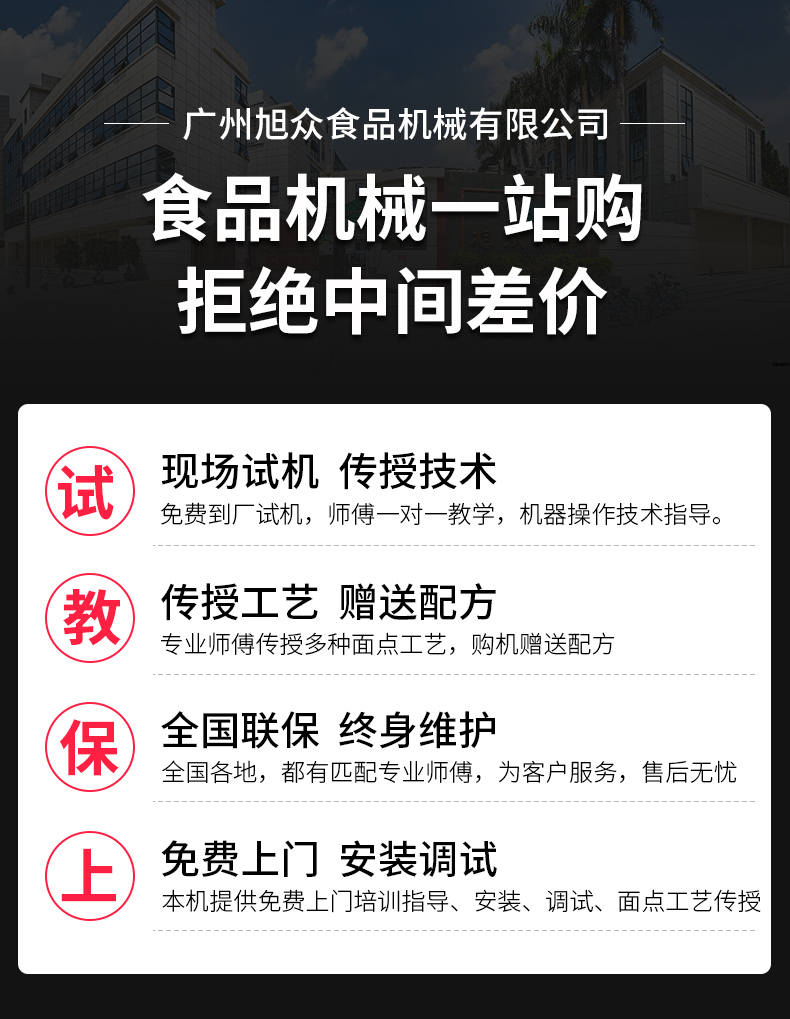 廣州旭眾食品機(jī)械有限公司是一家集科研開發(fā),生產(chǎn)設(shè)計(jì),營(yíng)銷服務(wù)為一體的現(xiàn)代化生產(chǎn)企業(yè)。現(xiàn)代化生產(chǎn)車間,精湛制造技術(shù),所產(chǎn)機(jī)械歷經(jīng)市場(chǎng)重重考驗(yàn),不斷贏得海內(nèi)外客戶的贊譽(yù)。