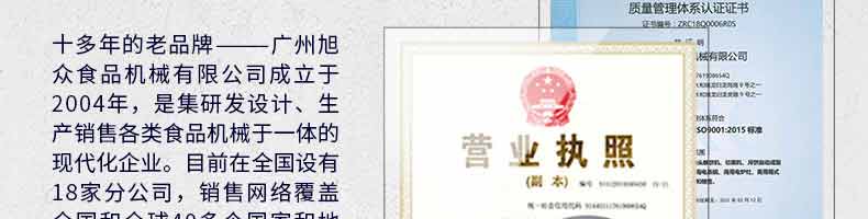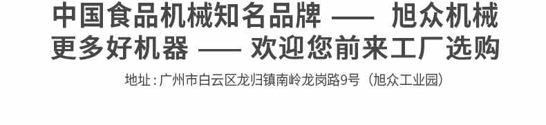 廣州旭眾食品機(jī)械有限公司是一家集科研開發(fā),生產(chǎn)設(shè)計(jì),營銷服務(wù)為一體的現(xiàn)代化生產(chǎn)企業(yè)。現(xiàn)代化生產(chǎn)車間,精湛制造技術(shù),所產(chǎn)機(jī)械歷經(jīng)市場(chǎng)重重考驗(yàn),不斷贏得海內(nèi)外客戶的贊譽(yù)。