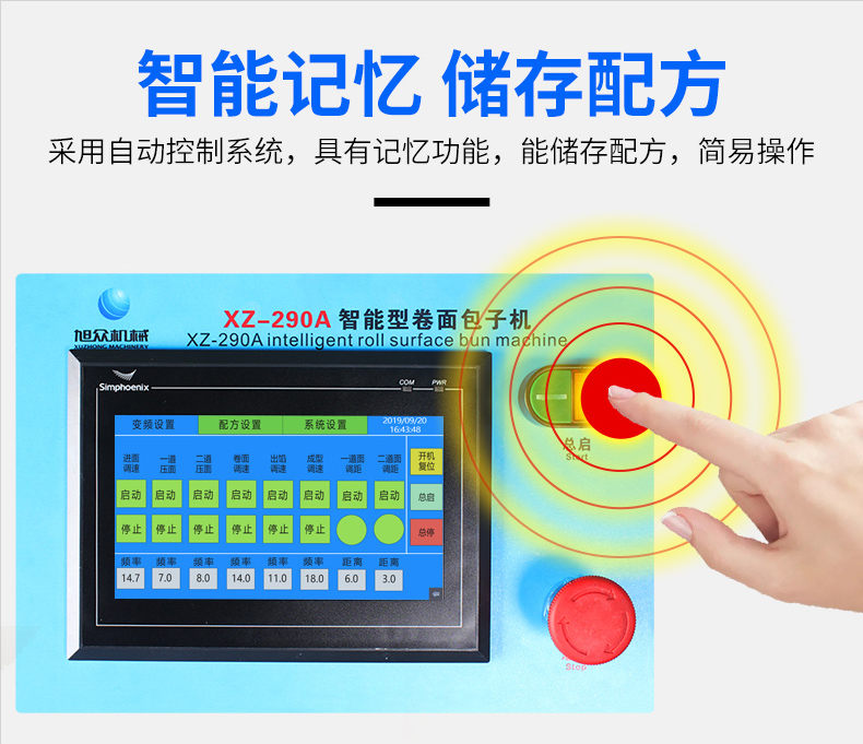 XZ-290A智能型卷面包子機(jī),仿手工智能包子機(jī)。操作簡單、精準(zhǔn)控制、快速成型、模擬人工。好機(jī)器,表里如一,專注品質(zhì)機(jī)器,客戶現(xiàn)場試機(jī)。一臺(tái)包子機(jī)輕松解決手工和面/包餡/人工效率低,用人成本高等一系列問題。
