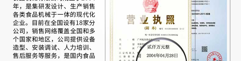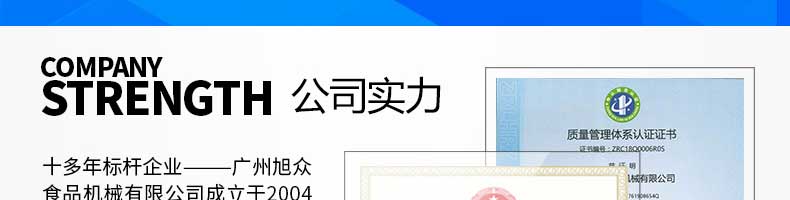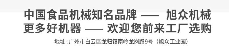 廣州旭眾食品機(jī)械有限公司是一家集科研開發(fā),生產(chǎn)設(shè)計(jì),營銷服務(wù)為一體的現(xiàn)代化生產(chǎn)企業(yè)。現(xiàn)代化生產(chǎn)車間,精湛制造技術(shù),所產(chǎn)機(jī)械歷經(jīng)市場重重考驗(yàn),不斷贏得海內(nèi)外客戶的贊譽(yù)。