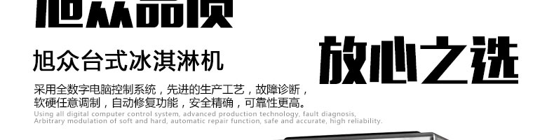 BQL-216T臺式冰淇淋機,●選用國際名牌成熟制冷配套件和高效壓縮機,融合旭眾精湛工藝輔以嚴格的質(zhì)量控制流程,使產(chǎn)品整體性能及品質(zhì)得以全面提升?!癫捎萌珨?shù)字電腦控制系統(tǒng),選用名牌優(yōu)質(zhì)電器元件,先進的生產(chǎn)工藝,故障診斷,軟硬任意調(diào)制,自動修復(fù)功能,安全精確,可靠性更高?!駥I(yè)成熟制冷系統(tǒng)設(shè)計,選用世界名牌大功率專用壓縮機,大大縮短冰淇淋成型時間,相同時間內(nèi)冰淇淋產(chǎn)量大幅度增加,使您生意火爆時依然得心應(yīng)手,為您創(chuàng)造財富?!癜踩椒€(wěn)的機械攪拌系統(tǒng),噪音更低、振動更小,使整機運行性能達到國際先進水平。●確保進料溫度在0°C~35°C;環(huán)境溫度5°C~40°C勻可正常使用。
