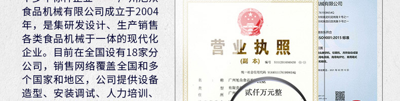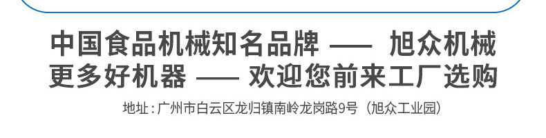 廣州旭眾食品機(jī)械有限公司是一家集科研開發(fā),生產(chǎn)設(shè)計,營銷服務(wù)為一體的現(xiàn)代化生產(chǎn)企業(yè)?,F(xiàn)代化生產(chǎn)車間,精湛制造技術(shù),所產(chǎn)機(jī)械歷經(jīng)市場重重考驗,不斷贏得海內(nèi)外客戶的贊譽(yù)。