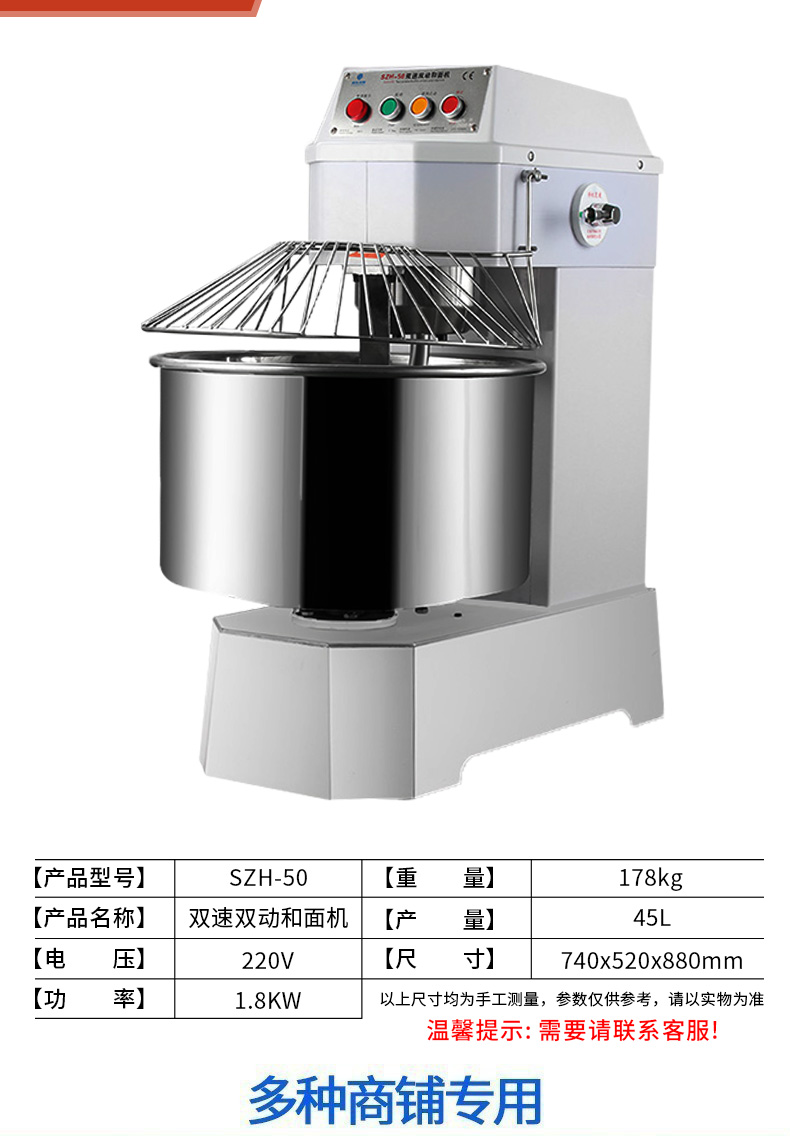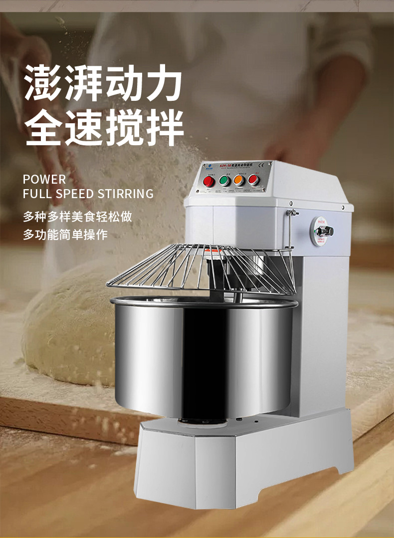 SZH-50型雙速雙動和面機,本機適合攪拌各種面包、包子、饅頭、湯圓、披薩餅面團,專業(yè)設(shè)計避免面團過分升溫并確保面團含氧量。過載、缺相保護裝置,防護罩安全連動裝置。
