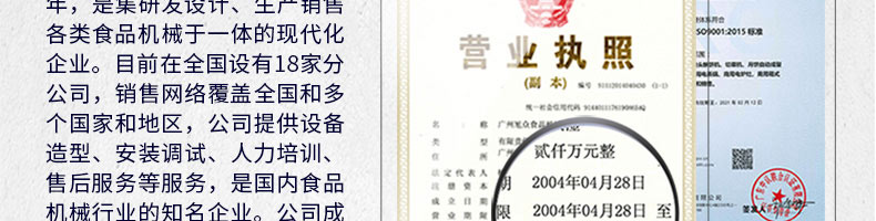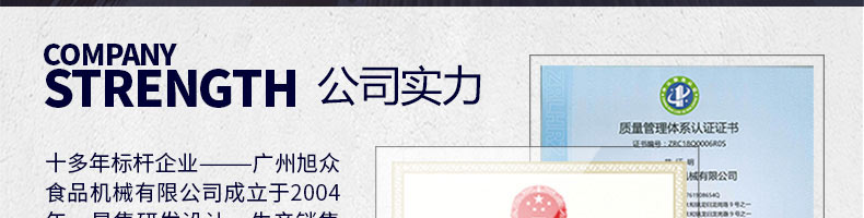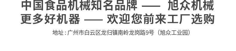 廣州旭眾食品機(jī)械有限公司是一家集科研開(kāi)發(fā),生產(chǎn)設(shè)計(jì),營(yíng)銷服務(wù)為一體的現(xiàn)代化生產(chǎn)企業(yè)?,F(xiàn)代化生產(chǎn)車間,精湛制造技術(shù),所產(chǎn)機(jī)械歷經(jīng)市場(chǎng)重重考驗(yàn),不斷贏得海內(nèi)外客戶的贊譽(yù)。