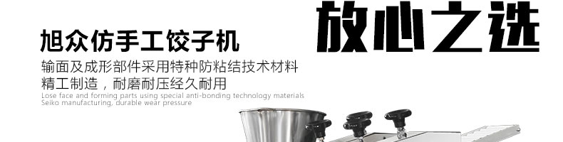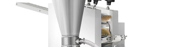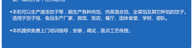 JGB-180餃子機,先進的自動餃子生產(chǎn)設備,包括主動壓皮部分、自動供餡部分、自動包合部分、自動成品輸送部分,并且只要更換模具,就可制鍋貼等食品。適合食品速凍廠、飯店、廠礦學校食堂等制作包餡面制品單位使用。