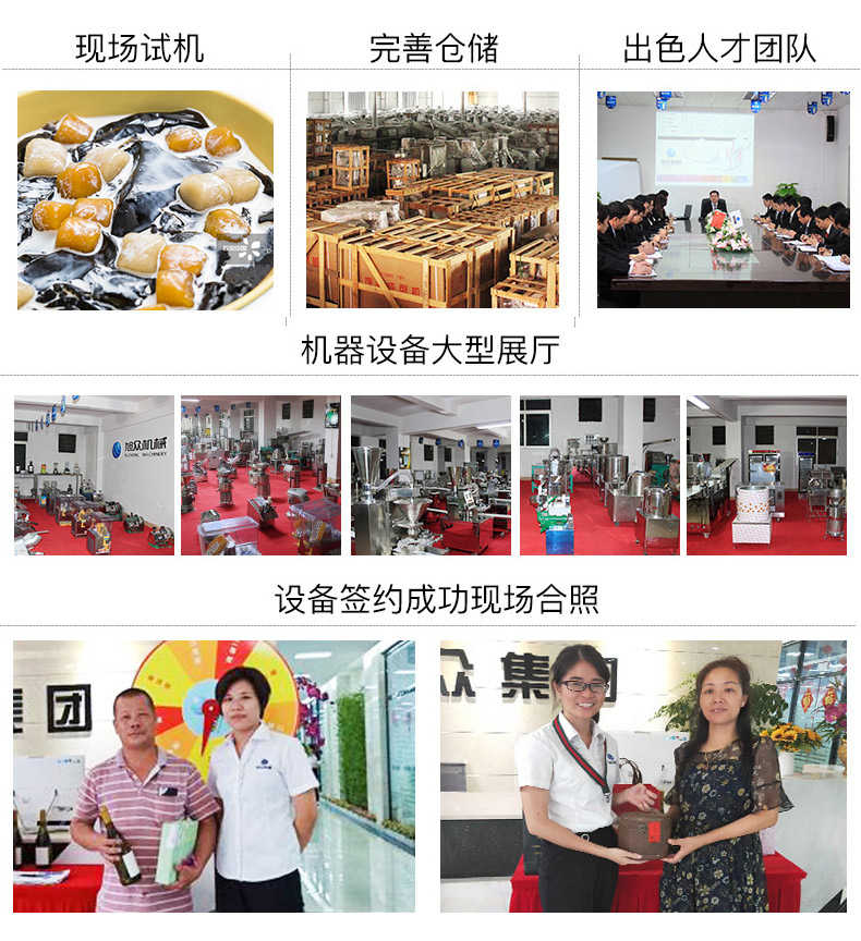 廣州旭眾食品機械有限公司是一家集科研開發(fā),生產(chǎn)設計,營銷服務為一體的現(xiàn)代化生產(chǎn)企業(yè)?,F(xiàn)代化生產(chǎn)車間,精湛制造技術(shù),所產(chǎn)機械歷經(jīng)市場重重考驗,不斷贏得海內(nèi)外客戶的贊譽。