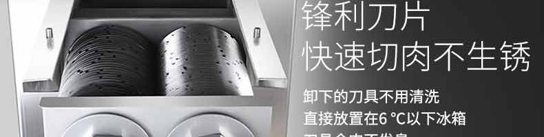 XZ-QX320-切肉機(jī),小型切肉機(jī)是一款主要對肉類進(jìn)行加工的設(shè)備,配置單層刀具一次性切肉片,二次切肉絲,再切成料。刀具采取外置懸臂式設(shè)計(jì),拆洗方便,衛(wèi)生更有保障;配置多種刀具,可加工不同厚度的肉片,實(shí)現(xiàn)一機(jī)多用;機(jī)內(nèi)裝有安全保護(hù)開頭,刀具外露時(shí),機(jī)器自鎖不能啟動,以保安全;卸下的刀具,不用清洗直接放置在6攝氏度以下的冰箱里,刀具余肉不發(fā)臭。刀片用特殊不銹鋼材料制造,經(jīng)久耐用。