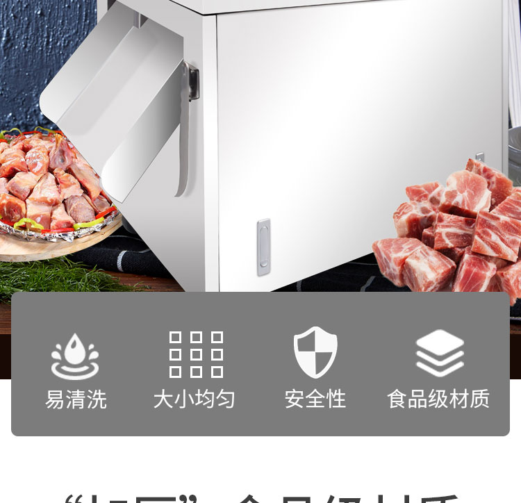 XZW-300魚禽類剁塊機,色禽類剁塊機適合切凍肉帶骨/不帶骨?!凹雍瘛笔称芳壊馁|(zhì)安全衛(wèi)生質(zhì)量保證。傳送帶推進物料提高效率節(jié)省力氣。