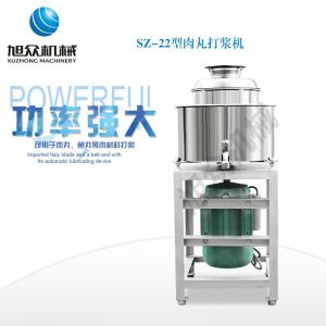 SZ-22型肉丸打漿機,本機裝肉用桶子采用不銹鋼制造,達到衛(wèi)生要求,肉桶外罩和桶底裝有冷卻裝置,確保肉漿新鮮。比手工的打漿更精細(xì),所產(chǎn)肉丸、魚丸彈性好,色澤潔白。