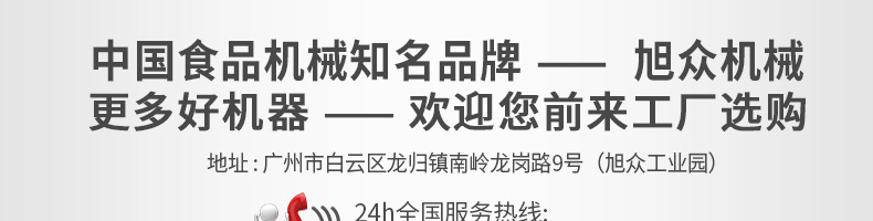 廣州旭眾食品機(jī)械有限公司是一家集科研開發(fā),生產(chǎn)設(shè)計,營銷服務(wù)為一體的現(xiàn)代化生產(chǎn)企業(yè)。現(xiàn)代化生產(chǎn)車間,精湛制造技術(shù),所產(chǎn)機(jī)械歷經(jīng)市場重重考驗,不斷贏得海內(nèi)外客戶的贊譽(yù)。