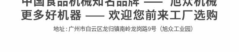 廣州旭眾食品機械有限公司是一家集科研開發(fā),生產(chǎn)設(shè)計,營銷服務(wù)為一體的現(xiàn)代化生產(chǎn)企業(yè)。現(xiàn)代化生產(chǎn)車間,精湛制造技術(shù),所產(chǎn)機械歷經(jīng)市場重重考驗,不斷贏得海內(nèi)外客戶的贊譽。