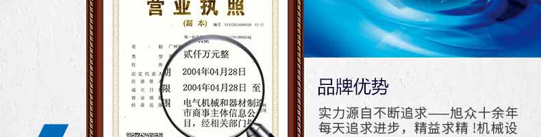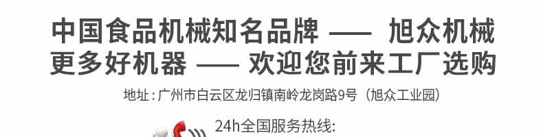 廣州旭眾食品機械有限公司是一家集科研開發(fā),生產(chǎn)設(shè)計,營銷服務(wù)為一體的現(xiàn)代化生產(chǎn)企業(yè)?,F(xiàn)代化生產(chǎn)車間,精湛制造技術(shù),所產(chǎn)機械歷經(jīng)市場重重考驗,不斷贏得海內(nèi)外客戶的贊譽。