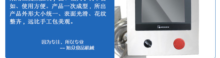 廣州旭眾食品機械有限公司是一家集科研開發(fā),生產設計,營銷服務為一體的現(xiàn)代化生產企業(yè)?,F(xiàn)代化生產車間,精湛制造技術,所產機械歷經市場重重考驗,不斷贏得海內外客戶的贊譽。